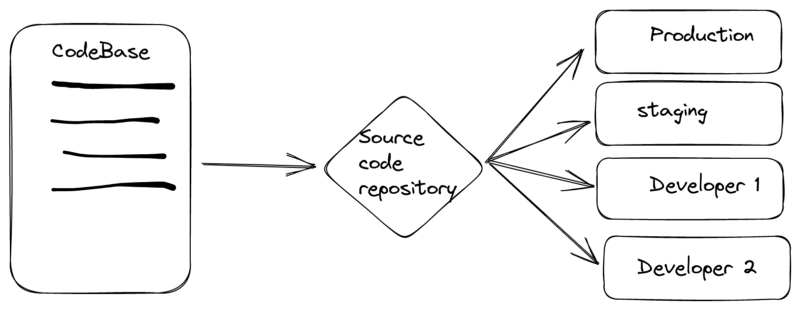 One codebase tracked in revision control, many deploys